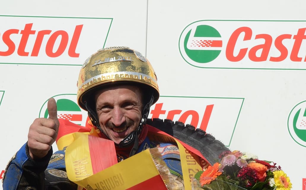 Der ADAC-Goldhelm saß am späten Donnerstagnachmittag auf dem Kopf des Altmeisters. Bern Diener bekam beim 78. Westfalenring-Grasbahnrennen des AMSC-Lüdinghausen als Sieger bei den internationalen Solisten die begehrte Motorsporttrophäe des ADAC. Diener wiederholte seinen Tagessieg aus dem Vorjahr und feierte seinen insgesamt siebten Triumph seit 1992 auf dem 1000-Meter-Grasbahnoval in Lüdinghausen.