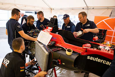 Zusammenarbeit: Einer der schönsten Momente ereignete sich in dieser Saison am Sachsenring. Michael Sauter war im zweiten Qualifying in der Wand eingeschlagen. Er blieb unversehrt, sein Wagen jedoch war demoliert. Alles deutete darauf hin, dass das Wochenende und wohlmöglich auch die Saison für den kleinen Rennstall gelaufen waren. Doch das Feld der ADAC Formel 4 zeigte sich solidarisch. Mechaniker der Teams Van Amersfoort Racing, R-ace GP und US Racing packten mit an und halfen tatkräftig mit, den Wagen wieder aufzubauen. Gesagt, getan – Michael Sauter konnte tatsächlich an den Rennen am Wochenende teilnehmen.