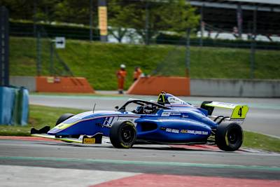 Ein erfolgreiches Wochenende erlebte Finn Wiebelhaus, der bereits am Samstag mit zwei 13. Plätzen seine positive Entwicklung fortsetzte. Im letzten Rennen des Wochenendes feierte er mit dem siebten Rang sein bislang bestes Saisonergebnis und auch die ersten Meisterschaftspunkte. „Mit den feuchten Bedingungen am Sonntagmorgen bin ich gut zurechtgekommen und habe viele Zweikämpfe für mich entschieden. Ich freue mich sehr über die ersten Zähler“, sagte der 17-Jährige. Weiter berichtete er: „Es war ein super Wochenende mit vielen positiven Eindrücken. Als Nächstes fahren wir auf dem Stadtkurs in Pau. Das wird eine neue und spannende Erfahrung für mich.“