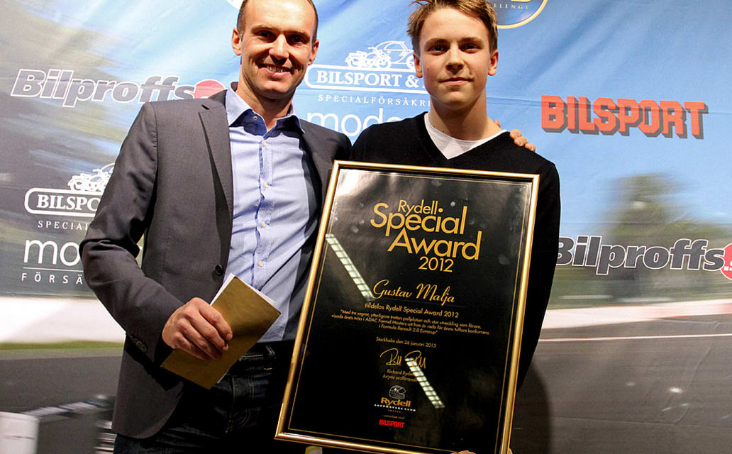 Gustav Malja wurde am Wochenende in seiner Heimat Schweden mit dem Rydell Special Award ausgezeichnet. Der amtierende Vize-Meister des ADAC Formel Masters erhielt die Trophäe aufgrund seiner eindrucksvollen Leistungen in der ADAC Formelschule. Malja erzielte 2012 drei Siege und 16 Podiumsplatzierungen und steigt zur kommenden Saison in den prestigeträchtigen Formel Renault 2.0 Eurocup auf. Die schwedische Motorsport-Ikone Rickard Rydell überreichte dem 17-Jährigen bereits zum zweiten Mal in Folge den Pokal. Malja ist der vierte Pilot, in der Geschichte der seit 1999 verliehenen Auszeichnung, dem diese Ehre in zwei aufeinanderfolgenden Jahren zuteilwird.