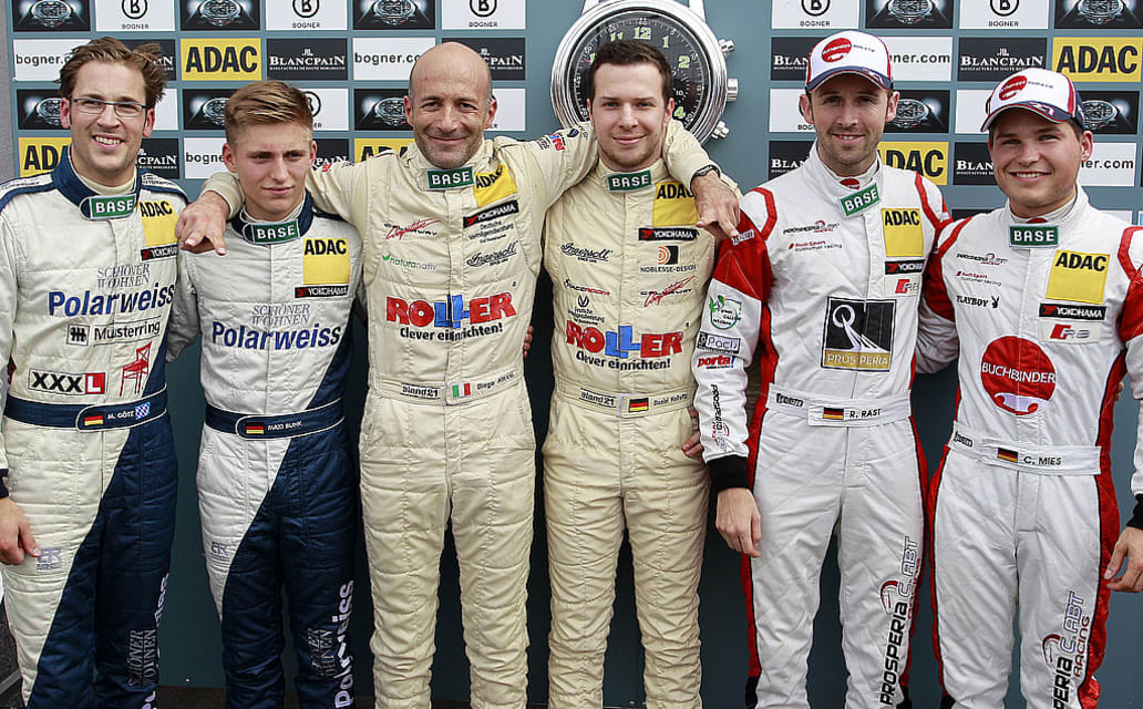 Maximilian Buhk (#10 Polarweiss Racing-Mercedes-Benz SLS AMG GT3) Rang drei: "Ich hatte beim Start etwas gepokert und das ist aufgegangen. Dass die Corvette dann so schnell von links kommt, hätte ich nicht erwartet. Wenn die Corvette in der derzeitigen Performance in Hockenheim weitermachen kann, werden die nur sehr schwer zu schlagen sein."
