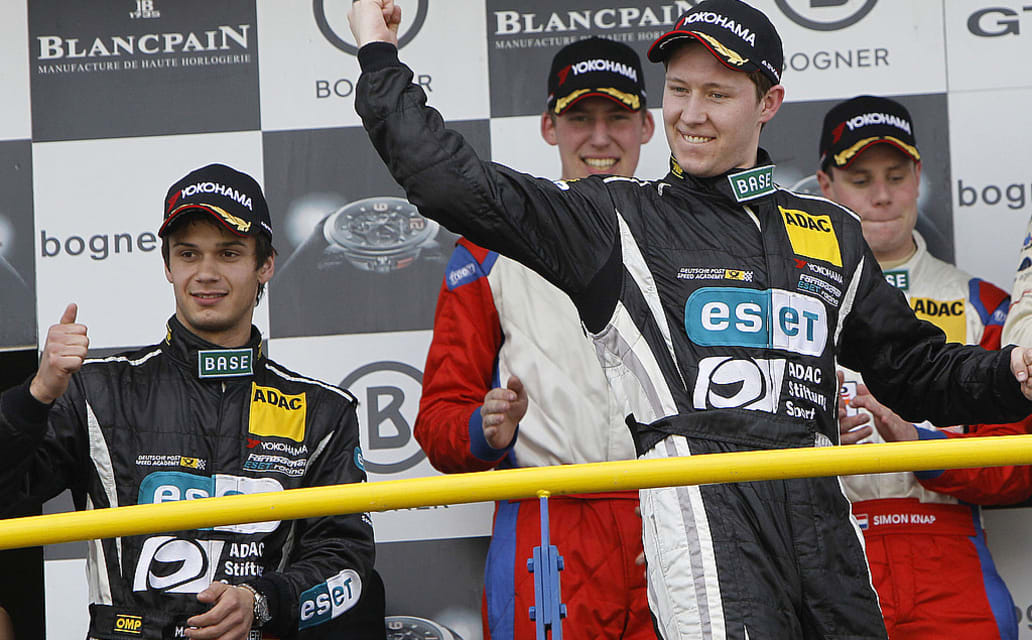 "Damit hätte wohl niemand gerechnet, nicht einmal ich selbst", sagt Philipp Frommenwiler nach der zweiten Siegerehrung des Wochenendes. Vom Champagner durchnässt, nimmt der 23-Jährige einen Glückwunsch nach dem anderen entgegen. Bereits im Qualifikationstraining deutete der Schweizer sein Potential an. Mit einer Rundenzeit von 1:28.364 Minuten sicherte sich der Youngster den dritten Startplatz. Im Rennen am Samstag knüpfte der Farnbacher-Racing-Pilot an die starke Leistung an. Mit großem Kampfgeist und viel Fingerspitzengefühl auf regennasser Fahrbahn erkämpften er und sein Teamkollege Mario Farnbacher den zweiten Platz.