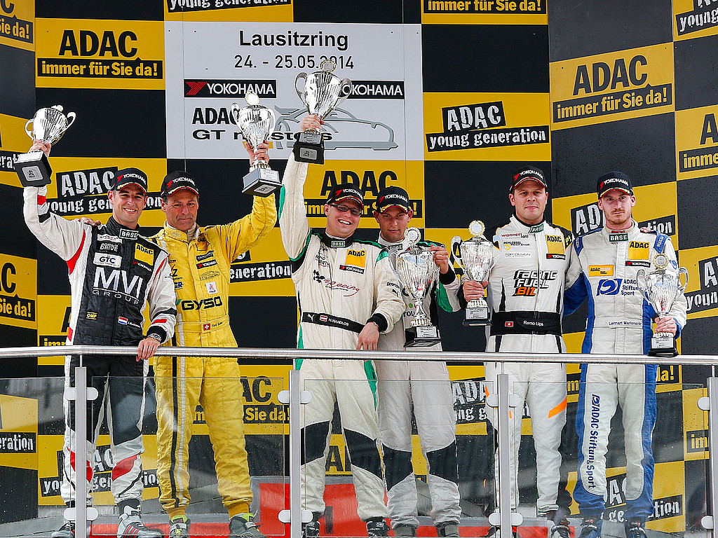 Die Siegesserie von Herbert Handlos (TONINO Team Herberth) in der Gentlemen-Wertung des ADAC GT Masters setzt sich auch beim ersten Rennen auf dem Lausitzring fort. Im Porsche 911 GT3 R fuhr der Österreicher gemeinsam mit Alfred Renauer zum vierten Klassensieg in Folge. Im ersten Rennen auf dem Lausitzring waren dem Porsche zwei Corvette von Callaway Competition auf den Fersen: Toni Seiler fuhr gemeinsam mit Jeroen Bleekemolen auf Rang zwei, Remo Lips wurde mit Unterstützung von Lennart Marioneck Dritter.