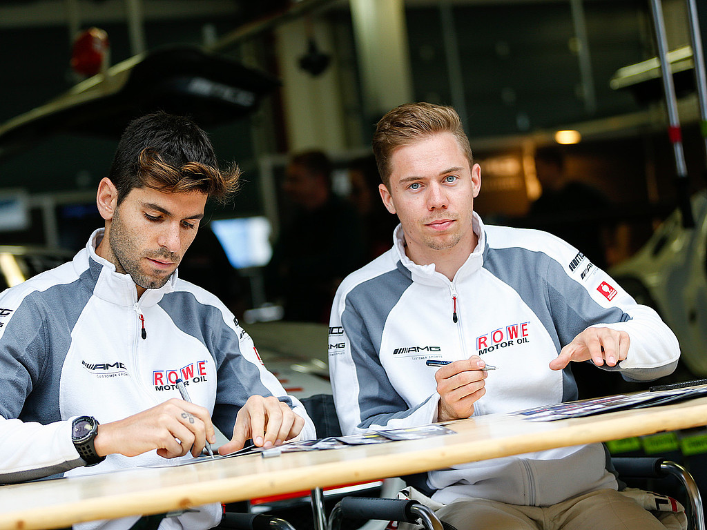 ROWE RACING hat bereits im Vorfeld des Rennens mit der Besetzung des zweiten Flügeltürers für Schlagzeilen gesorgt. So teilt sich fortan der ehemalige Formel-1-Fahrer Jaime Alguersuari (Spanien) das Cockpit mit Nico Bastian (Frankfurt). Für die beiden 24-Jährigen war es der erste Start im ADAC GT Masters. Das Duo zeigte dabei eine äußerst starke Vorstellung und etablierte sich mit schnellen Zeiten auf Anhieb in der Liga der Supersportwagen. Im Schwesterfahrzeug von ROWE RACING zeigten Maro Engel (Monaco) und Jan Seyffarth (Querfurt) vor allem im zweiten Rennen eine fehlerfreie Leistung und sammelten weitere wertvolle Punkte für die Fahrer- und Teamwertung.