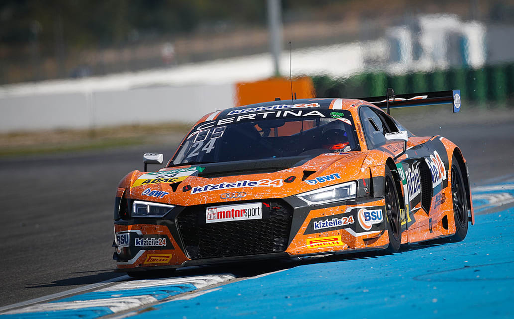 Vier Ringe = Acht Punkte: Für Filip Salaquarda und Markus Winkelhock startete das Finale in Hockenheim nach Maß: Mit 1:39.299 Minuten setzte das Duo im Audi R8 LMS #24 die drittschnellste Zeit der Trainingssessions und war perfekt aufgestellt für das Wochenende. Diese Top-Leistung untermauerte Salaquarda mit Rang sieben im Qualifying zum Samstagslauf und machte Hoffnung auf große Punkte. Der Tscheche fuhr ein überzeugendes Rennen und übergab Winkelhock das Auto auf Rang sechs. Der ehemalige Formel-1- und DTM-Pilot spielte schließlich all seine Routine aus und hielt die Position bis zur Ziellinie - acht wichtige Punkte in der Teammeisterschaft. Im zweiten Lauf des Wochenendes hatte das Duo hingegen erneut kein Rennglück. Von Platz neun gestartet, waren die Punkte in Reichweite, bis Winkelhock von einem Konkurrent aufs Gras gedrückt wurde und etliche Positionen verlor. Hinzu kamen Bremsprobleme, die auch Salaquarda in seinem Stint einbremsten. Somit blieben dem Duo auf Rang 17 die Punkteränge verwehrt.