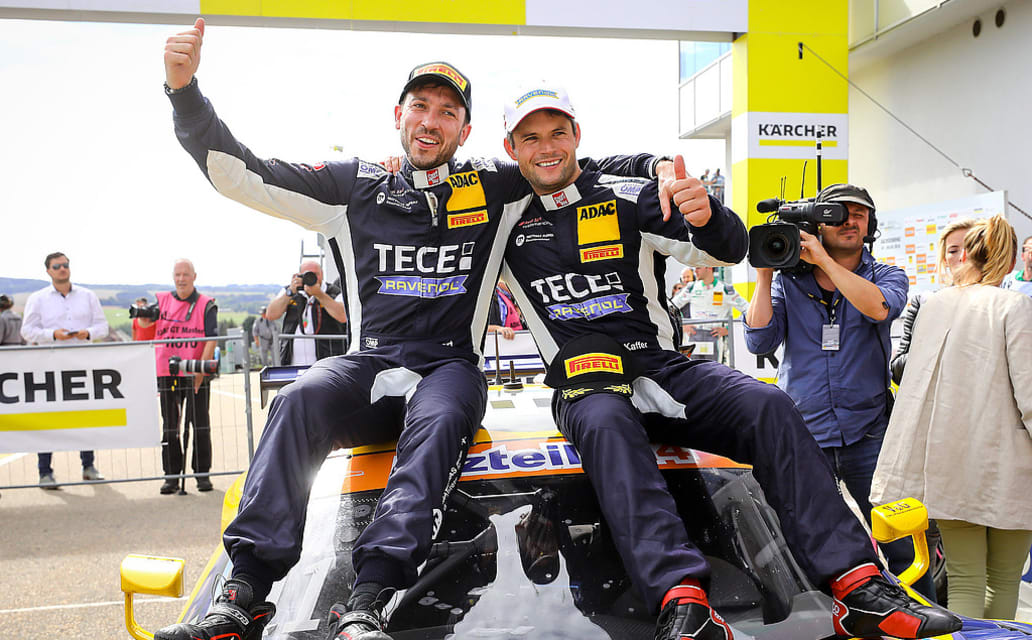 In der Schlussphase des zweiten Rennens auf dem Sachsenring konnte Elia Erhart im Audi R8 von EFP by TECE die Führung gegen die hart attackierende Konkurrenz verteidigen. Durch eine clevere Strategie seines Teams konnte er die Spitzenposition einnehmen, nachdem er das Auto von Pierre Kaffer übernommen hatte. Kaffer wurde zum Fahrerwechsel gerufen, als eine Safety-Car-Phase das Feld einbremste. Zu dem Zeitpunkt hatten die Konkurrenten bereits gestoppt.