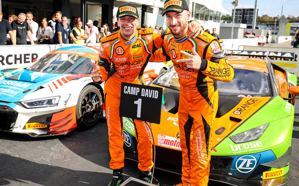 Die Lamborghini-Piloten Mirko Bortolotti (29/I) und Christian Engelhart (32/Starnberg, beide Orange1 by GRT Grasser) holten im Samstagsrennen des ADAC GT Masters in Hockenheim ihren dritten Saisonsieg und bleiben im Titelrennen der "Liga der Supersportwagen". Platz zwei ging auf dem badischen Kurs an Indy Dontje (26/NL) und Maximilian Götz (33/Uffenheim, beide Mann-Filter Team HTP) im Mercedes-AMG, Dritte wurden Pole-Setter Dennis Marschall (23/Eggenstein-Leopoldshafen) und Partnerin Carrie Schreiner (21/Völklingen, beide HCB-Rutronik Racing) im bestplatzierten Audi. "Ein perfekter Tag", so Sieger Bortolotti. "Ich freue mich sehr über unseren dritten Saisonsieg. Der Erfolg war extrem wichtig für uns."