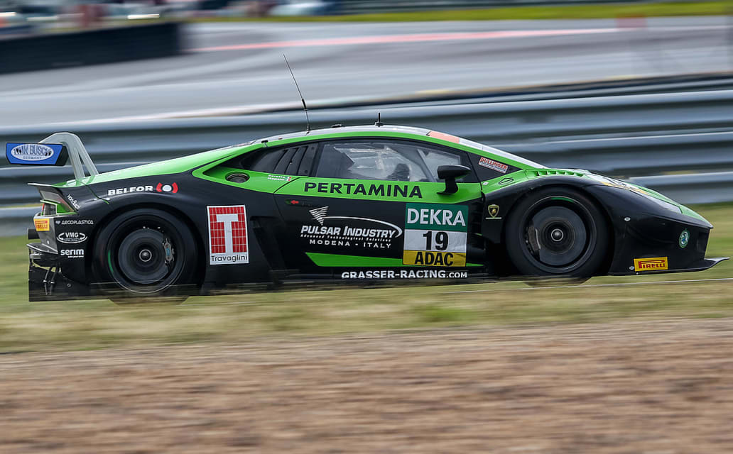 Eine überzeugende Leistung zeigten Lamborghini-Junior Michele Beretta und Lamborghini-Werkspilot Marco Mapelli – vor allem im Renntrimm: Das Duo machte in beiden Läufen zusammen satte 17 Positionen gut. Die Belohnung: Zweifache Punkteausbeute und das erste Junior-Podium im ADAC GT Masters für den 24-jährigen Beretta. „Das zweite Rennen war richtig gut, vor allem gemessen an dem, wie das Wochenende für uns angefangen hat. Mir unterlief am Samstag der ein oder andere Fehler, was mich sehr ärgert", blickte Beretta zurück. "Ich bin mit dem fünften Platz im Sonntagsrennen natürlich sehr zufrieden. Allerdings wäre sogar noch mehr möglich gewesen. Leider haben wir gegen Rennhälfte ein wenig Zeit verloren, weswegen wir bis zum Schluss nicht mehr um das Podium kämpfen konnten." Die Ausgangslage im ersten Lauf war alles andere als rosig. Dennoch schafften es die beiden Italiener im Lauf der 60 Minuten, von Startplatz 30 in die Punkte vorzufahren. Die schwierigen Bedingungen mit einsetzendem Regen meisterten Mapelli und Beretta hervorragend.