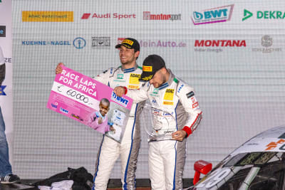 12.181 Rennrunden und jede davon für den guten Zweck. Für jede gefahrene Runde in den 14 Rennen der Int. Deutschen GT-Meisterschaft 2021 spendeten Serienpartner BWT, das führende Wassertechnologie-Unternehmen in Europa, und der ADAC vier Euro. Insgesamt kamen so 48.724 Euro zusammen, dieser Betrag wurde von BWT und dem ADAC auf eine Gesamtsumme von 60.000 Euro aufgestockt. Im Rahmen der b.waterMISSION von BWT, die sich für sauberes Trinkwasser einsetzt, werden mit dem Betrag Brunnen in Gambia und Tansania gebaut. Bei der Siegerehrung der Int. Deutschen GT-Meisterschaft übergaben Lutz Hübner, CMO der BWT AG, und Lars Soutschka, Vorstand ADAC e. V., symbolisch einen Scheck an die Deutschen GT-Meister Ricardo Feller (21/CH) und Christopher Mies (32/Düsseldorf). Auch die von BWT und dem ADAC GT Masters in diesem Jahr initiierte „Bottle Free Zone“ im Fahrerlager war ein voller Erfolg. Rund 100.000 Plastikflaschen wurden durch Wasserspender in den Boxen der Teams, im Media Center und in organisatorischen Bereichen eingespart und damit ein signifikanter Beitrag zur Reduzierung von Plastikmüll geleistet.