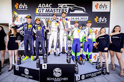 Jonathan Aberdein (24/ZA) und Raffaele Marciello (27/I) vom Mann-Filter Team Landgraf schrammten als Vierter mit ihrem Mercedes-AMG GT3 Evo #48 um gut eine Sekunde am Podiumsplatz vorbei. Die Top Fünf komplettierten Robert Renauer (37/Vierkirchen) und Klaus Bachler (30/A) und sorgten im Porsche 911 GT3 R #44 ebenfalls für ein gelungenes Debüt ihres Teams ID Racing with Herberth. Christian Engelhart (35/Starnberg) und Ayhancan Güven (24/TUR) fuhren im Porsche 911 GT3 R #91 für Joos Sportwagentechnik auf Platz sechs, Konsta Lappalainen (20/FIN) und Mick Wishofer (22/A) steuerten den Lamborghini Huracán GT3 Evo von Emil Frey Racing mit der Startnummer 14 auf Rang sieben. Der beste BMW M4 GT3 folgte mit dem Duo Jesse Krohn (31/FIN) und Nicky Catsburg (34/NL) bei seinem ADAC GT Masters-Debüt von Lokalmatador Schubert Motorsport als Achter. Eine fantastische Aufholjagd gelang Kim-Luis Schramm (24/Meuspath) und Dennis Marschall (25/Eggenstein) von Rutronik Racing, die sich mit dem Audi R8 LMS GT3 Evo II #27 von Startplatz 18 auf Rang neun vorkämpften. Den letzten Top-Ten-Platz sicherten sich ihre Teamkollegen Patric Niederhauser (30/CH) und Luca Engstler (22/Wiggensbach) im Audi R8 LMS GT3 Evo II mit der Startnummer 15.
