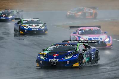 Die Zuschauer sahen am Samstag auf dem Lausitzring einen der spektakulärsten Meisterschaftsläufe der bisherigen Saison. Bei teilweise starkem Regen hatten alle Fahrer Mühe, ihre Supersportwagen auf der nassen Strecke zu halten. Es gab harte Duelle und einige Ausritte, dennoch kam das Safety-Car nicht zum Einsatz. Pole-Setter Christian Engelhart konnte seine Führung nach dem Start behaupten, hinter ihm reihten sich Patric Niederhauser (30/CH) im Audi R8 LMS GT3 Evo II #15 von Rutronik Racing und Albert Costa Balboa (32/E) mit dem Lamborghini Huracán GT3 Evo #63 von Emil Frey Racing auf den Plätzen zwei und drei ein. Nach dem Pflicht-Boxenstopp übergab Engelhart seinen Neunelfer an Ayhancan Güven und der 24-Jährige konnte sich zeitweilig mit einem Vorsprung von über fünf Sekunden vom Feld absetzen. Dahinter profitierte Jack Aitken (26/GB), der den Lamborghini #63 von Startfahrer Albert Costa Balboa übernommen hatte, von einem Dreher des vor ihm liegenden Audi-Piloten Luca Engstler (22/Wiggensbach) und verbesserte sich auf Platz zwei.