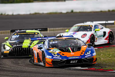 Bei einer Außentemperatur von 17 Grad Celsius debütierte das erste Endurance-Rennen des ADAC GT Masters auf dem 3,629 Kilometer langen Sprintkurs des Nürburgrings. Der fünfte Meisterschaftslauf fand erstmals über 80 Minuten Renndistanz statt und sah zwei Pflichtboxenstopps vor. Die zahlreichen Zuschauer auf den Tribünen im Rahmen des ADAC Truck-Grand-Prix erlebten einen gelungenen Start des Pole-Setters Tim Zimmermann (Langenargen/Grasser Racing Team), der sich sofort ein paar Wagenlängen Abstand auf den Zweitplatzierten Finn Wiebelhaus (Obertshausen/Haupt Racing Team) erarbeitete. Doch schon nach einer Runde machte eine Safety-Car-Phase den Vorsprung zunichte. Beim Re-Start ließ der Lamborghini-Pilot allerdings nichts anbrennen und setzte die Flucht nach vorne fort. Da die Teams mit unterschiedlichen Reifen-Strategien agierten, ereigneten sich nach dem ersten Boxenstopp einige Verschiebungen im Feld. Als Zimmermann an seinen Teamkollegen Benjamin Hites übergab, sah es zunächst danach aus, als wenn er die Spitzenposition behalten könne. Allerdings zwang Schumacher den Chilenen kurze Zeit später in einen Fehler und zog am Ende der Zielgeraden an dem Lamborghini vorbei. Mit zwischenzeitlich zehn Sekunden Vorsprung steuerte der Mercedes-AMG-Pilot die Boxengasse zum zweiten Mal an. Dabei fand der Fahrerwechsel auf Owega statt, der für seinen zweiten Stint einen neuen Satz Reifen erhielt. Ein cleverer Schachzug, denn der Vorjahres-Champion brachte den frischen Pirelli-Reifen schnell ins ideale Arbeitsfenster und bezwang Kalender in einem spannenden Finish. „Ich bin mit meiner Leistung heute nicht ganz zufrieden. In den letzten Runden wurden mir die abbauenden Reifen zum Verhängnis, sodass ich Salman keine große Gegenwehr entgegenbringen konnte. Sicherlich war heute mehr drin, aber wir kommen morgen stärker wieder zurück“, sagte Kalender.