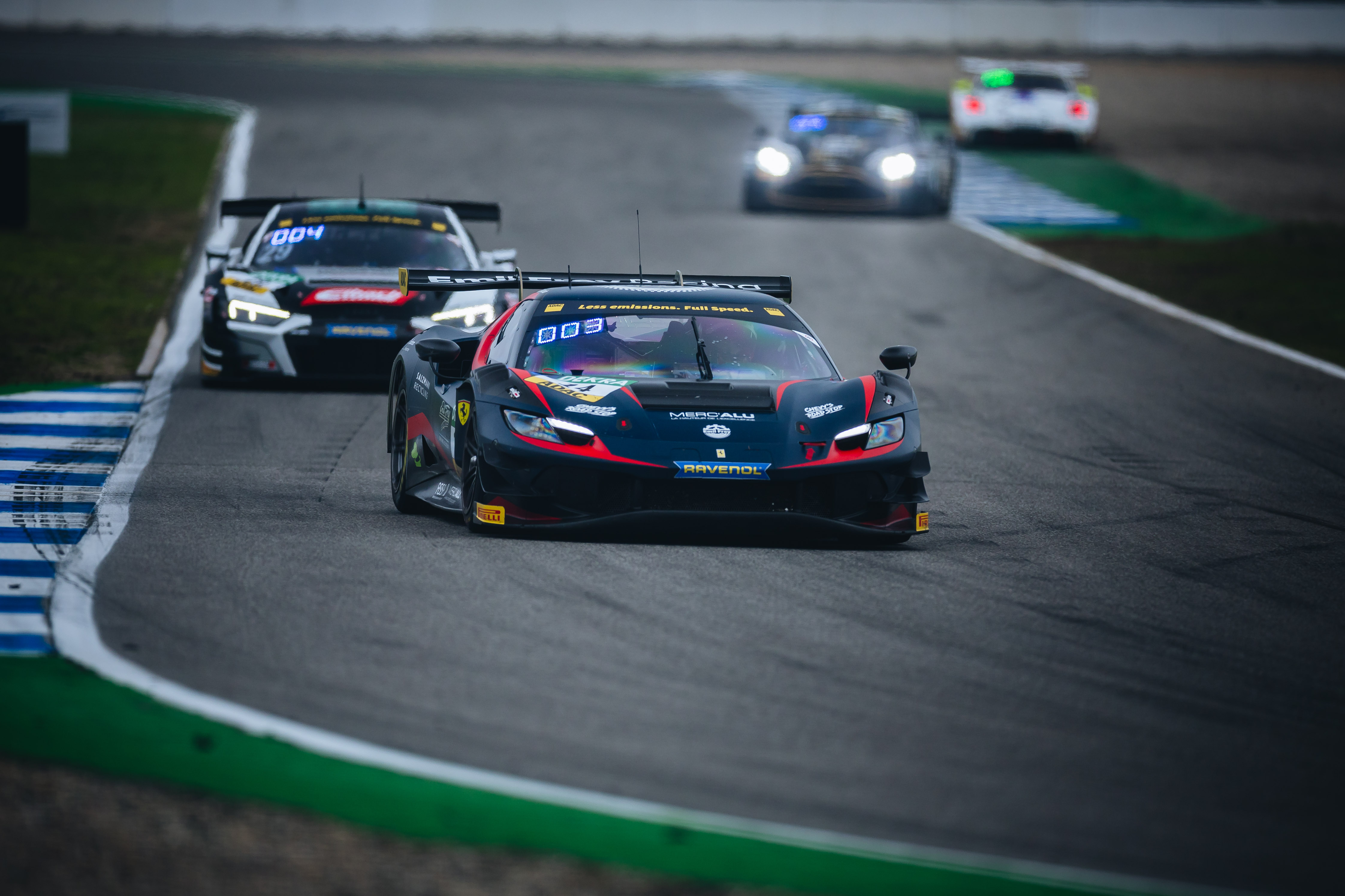 Nachdem auch D´Auria und Juliano Holzem (Polch/Land Motorsport) im Audi R8 LMS GT3 Evo2 am Fach-Porsche vorbeizogen, entbrannte ein Herzschlagfinale um die dritte Position. In einem hart geführten Duell holte sich der Ferrari letztlich den letzten verbleibenden Platz auf dem Podium. „Es war ein hartes Battle, aber das macht die Serie aus und das wollen auch die Fans sehen. Die Saison mit einem weiteren Podiumsergebnis abzuschließen, ist jedenfalls super“, fasste Valente den Schlussspurt seines Teamkollegen D´Auria zusammen. Schwarzer, der sich bis dato in beachtlicher Leistung gegenüber den Silber-Piloten präsentierte, schied nach einem Unfall in der Sachs-Kurve kurz vor Rennende aus.