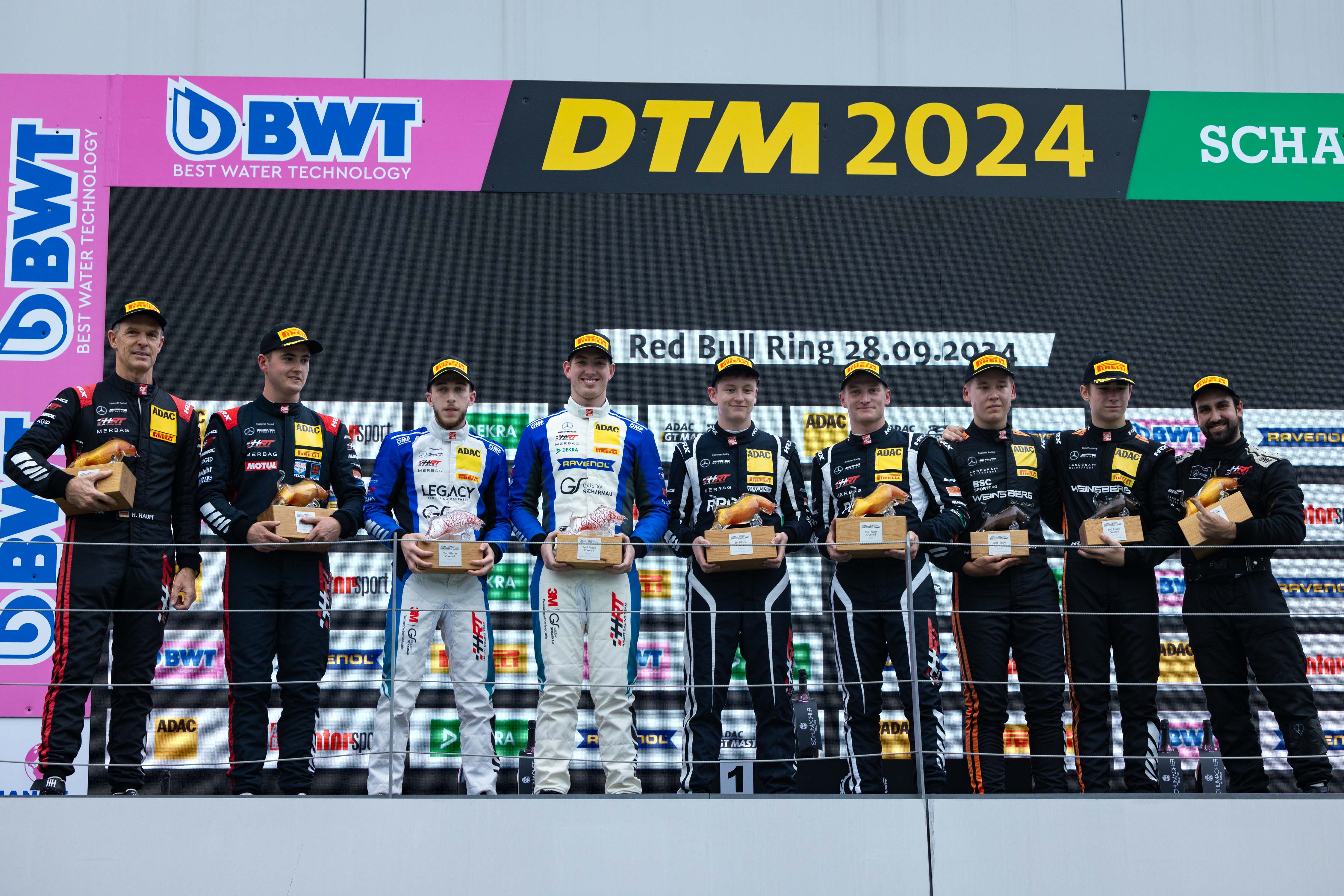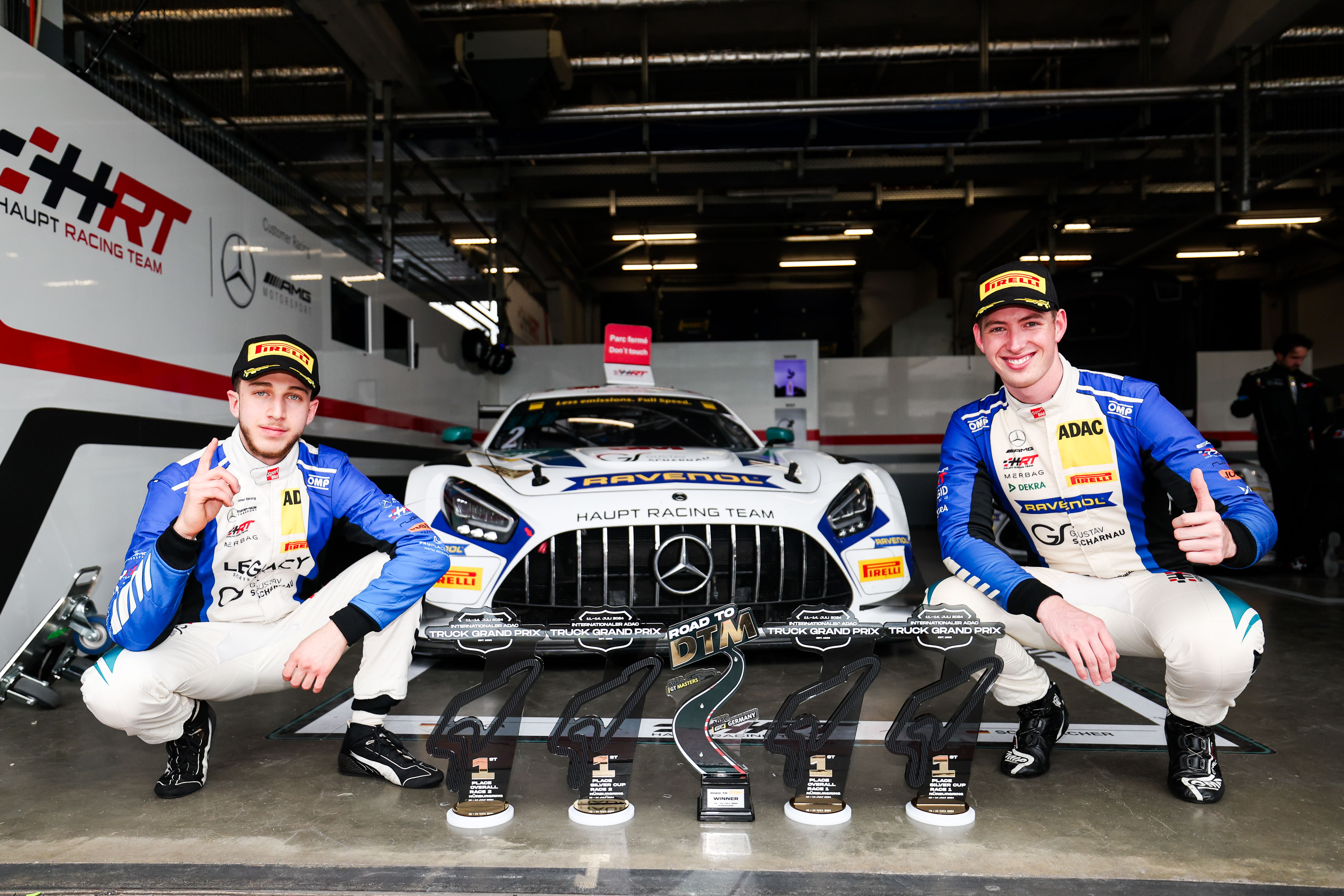 Den größten Anteil am erneuten Titel hatten David Schumacher (Salzburg) und Vorjahres-Champion Salman Owega (Köln) in einem von drei Mercedes-AMG GT3. Die beiden gewannen vor heimischer Kulisse auf dem Nürburgring das erste Endurance-Rennen sowie den 250. Meisterschaftslauf des ADAC GT Masters. Ihren dritten Triumph feierten die beiden Mercedes-AMG-Piloten im elften Saisonrennen in Hockenheim. Auf dem Red Bull Ring trugen sich dann mit Jannes Fittje (Langenhain) sowie Finn Wiebelhaus (Obertshausen) die nächsten HRT-Fahrer in die Siegerliste ein und bescherten der Truppe den vierten Saisonerfolg.