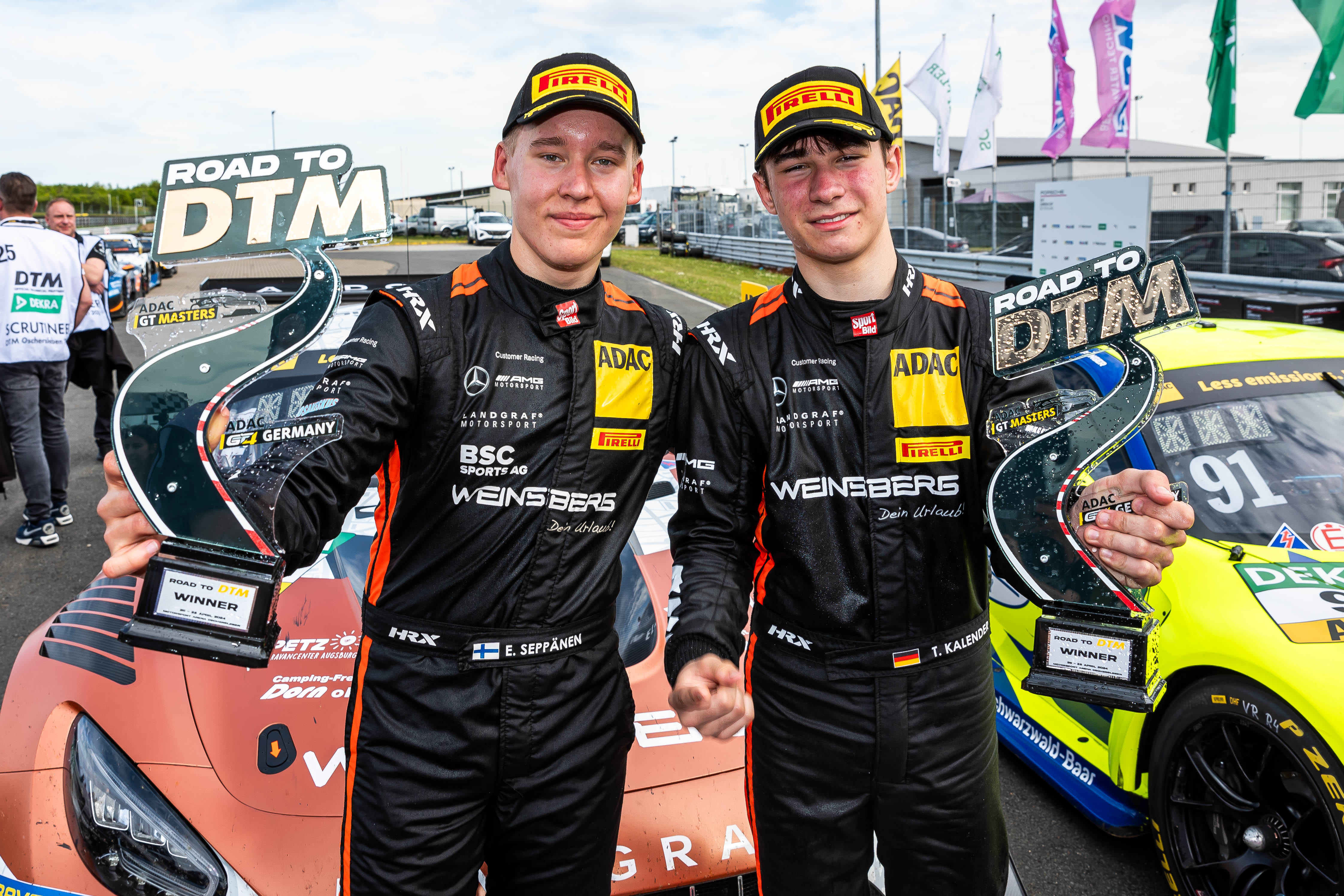 Großer Jubel bei Elias Seppänen (FIN) und Tom Kalender (Hamm/Sieg): Mit dem drittenPlatz im elften Saisonrennen auf dem Hockenheimring Baden-Württemberg besiegelten die beiden Mercedes-AMG-Piloten von Landgraf Motorsport den Meistertitel im ADAC GT Masters 2024. Ein geschichtsträchtiger Moment für das Team aus Gensingen im Landkreis Mainz-Bingen, denn es ist bereits die dritte Fahrermeisterschaft in Folge. Zwei der Triumphe fuhr Seppänen ein, dem es in dieser Saison gelang, seinen Titel zu verteidigen – ein Erfolg, den vor ihm niemand erreichte. Doch nicht nur der 20-jährige Finne vollbrachte etwas Historisches. Sein Teamkollege Kalender brach mit gerade einmal 16 Jahren, sechs Monaten und 23 Tagen den Rekord als jüngster Titelträger aller Zeiten und löste dabei Kelvin van der Linde (ZA) ab, der bei seinem ersten Meistererfolg bereits volljährig war.