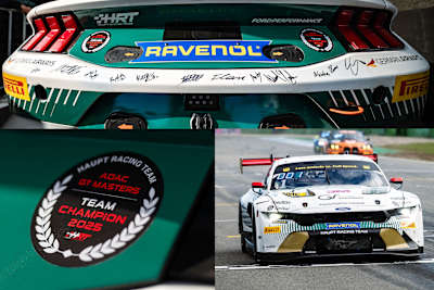 Nach den Gewinnen der Fahrer-, Team-, Silver Cup- und „Road-to-DTM“-Meisterschaften im Samstagsrennen am Hockenheimring, war der Ford Mustang GT3 #1 des Haupt Racing Teams am Sonntag mit speziellem Design unterwegs. Die vorher schwarzen Bereiche der Front glänzten golden. Und am Heck des Mustangs prangten die Unterschriften aller Teammitglieder, die an diesem Erfolg beteiligt waren. Das Design brachte Glück, denn die neuen Champions gewannen das Finalrennen der Saison 2025.