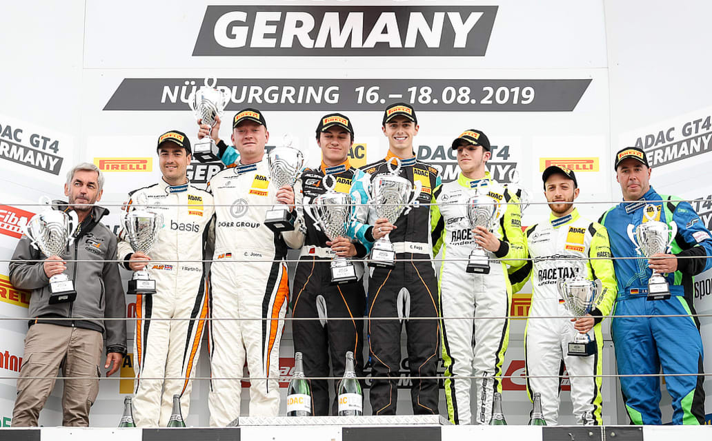 Charles Fagg (19/GBR) und Michael Benyahia (19/MAR, beide Team GT) gewinnen im McLaren 570S GT4 das Samstagsrennen der ADAC GT4 Germany auf dem Nürburgring. Fred Martin-Dye (30/GBR) und Christer Jöns (32/Ingelheim, beide Dörr Motorsport) machen als Zweite den Doppelsieg für den britischen Hersteller perfekt. Hamza Owega (27/Köln) und Jusuf Owega (17/Köln, beide GetSpeed Performance) führen das Rennen zunächst lange Zeit an und komplettieren im Mercedes-AMG GT4 das Podium das Dritte. "Ich entschuldigte mich gestern Abend noch bei meinem Teamchef für die schlechte Startposition", erklärte Fagg, der von Platz sechs losfuhr. "Aber ich versprach ihm gleichzeitig auch, alles zu geben, um das Rennen für ihn zu gewinnen. Das ist jetzt tatsächlich gelungen. Ich kann es noch gar nicht fassen."