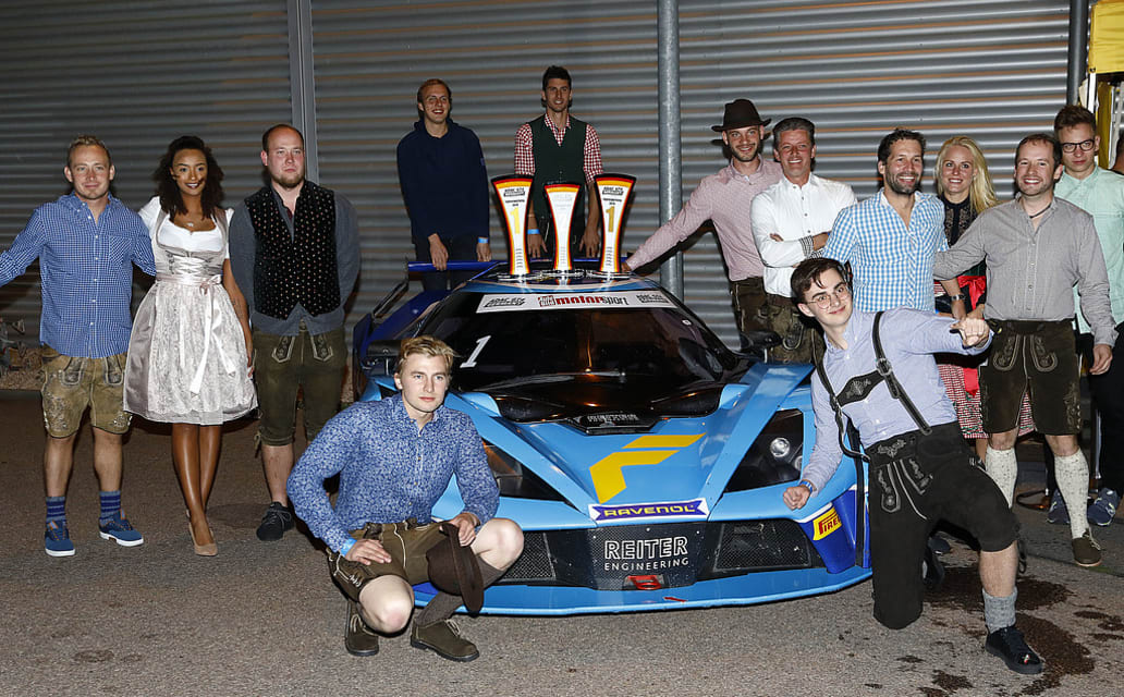 Meister-Grüße aus der Lederhose: Am Sonntagabend wurde in der ADAC GT4 Germany auch abseits der Rennpiste ordentlich Gas geben. In der Karthalle des Sachsenrings fand die große Saisonabschlussfeier statt. Die Champions Mads Siljehaug (23/NOR) und Eike Angermayr (20/AUT) sowie ihr Rennstall Felbermayr-Reiter erschien dazu in traditioneller bayrischer Tracht. „Unser Team ist ja in Oberbayern ansässig und auch für mich als Österreicher ist Lederhose Pflicht. Wir wollten der Feier mit unserem Outfit das i Tüpfelchen aufsetzen“, hatte Angermayr mächtig Freude.