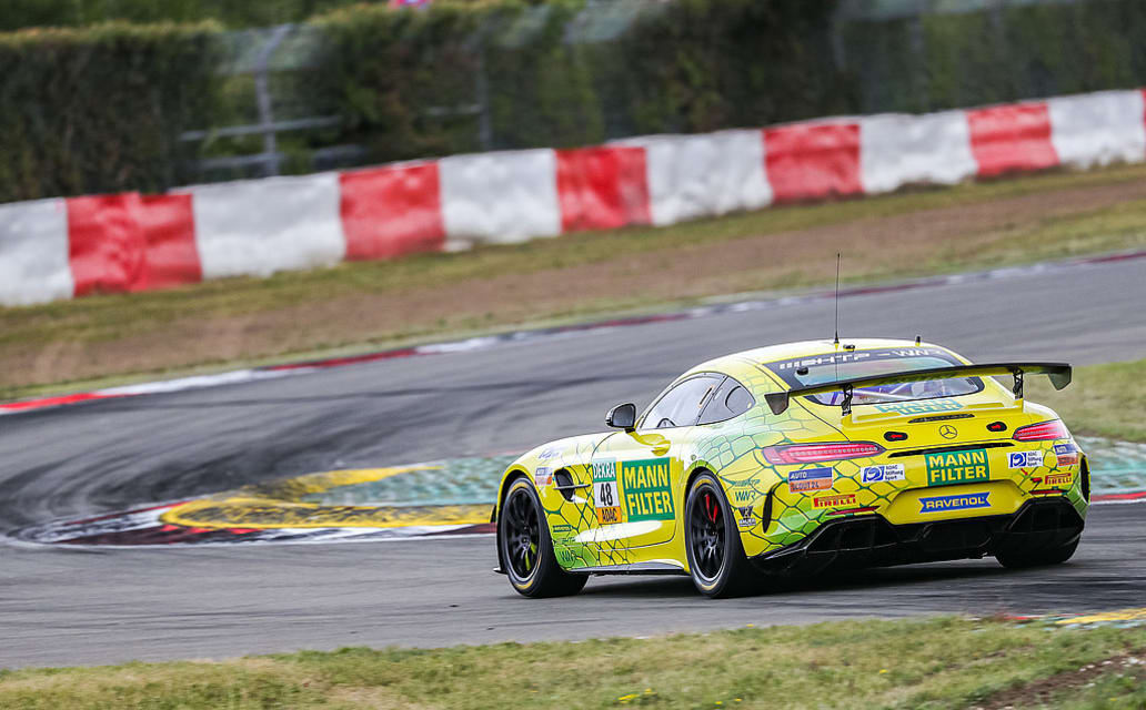 Vierter wurde der Mercedes-AMG GT4 vom DLV-Team Schütz Motorsport, der im ersten freien Training mit 1:34,377 Minuten auch die Tagesbestzeit aufstellte. Marcus Suabo (51/Malsch) und Marvin Dienst (23/Lampertheim) lagen am Nachmittag 0,739 Sekunden hinter den Markenkollegen zurück.