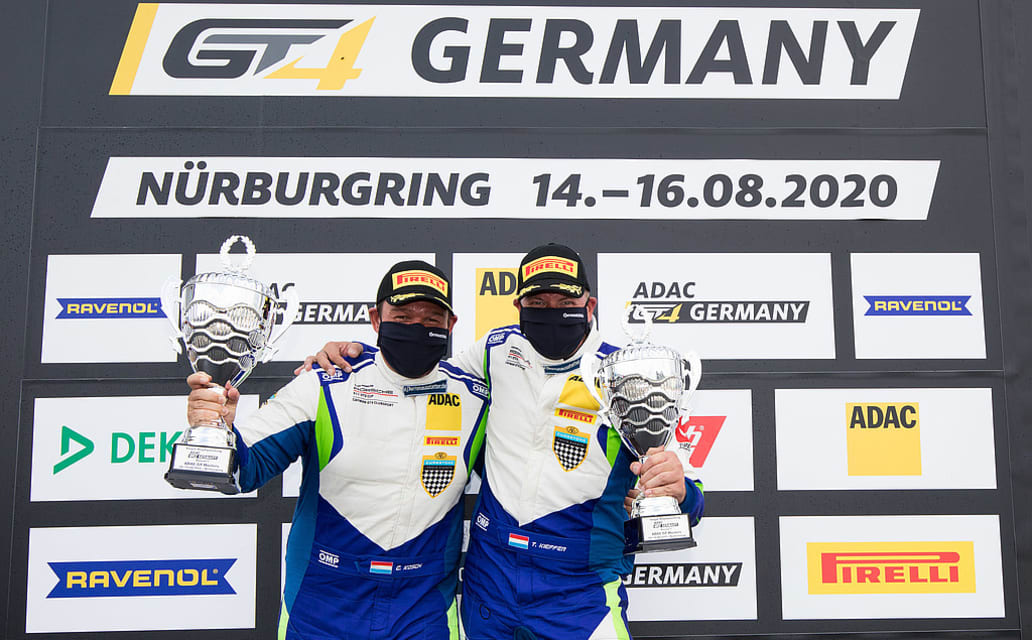 Doppelte Trophy-Sieger: Tom Kieffer (45/LUX) und Christian Kosch (43/LUX, beide Team Allied-Racing) konnten auf dem Nürburgring mächtig abräumen. Das Porsche-Duo gewann sowohl im Rennen am Samstag als auch am Sonntag die Trophy-Wertung der ADAC GT4 Germany für Bronze-Piloten über 35 Jahren. Kieffer hatte bereits 2019 auf dem Hockenheimring einen Gaststart in der ADAC GT4 Germany absolviert und sich 2020 für eine volle Saison entschieden. Landsmann Kosch gab auf dem Nürburgring sein Serien-Debüt.