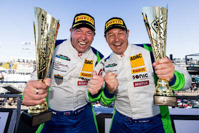 Erfolgreiche Gentlemen: Tom Kieffer (46/LUX) und Christian Kosch (44/LUX, beide Team Allied-Racing) konnten in Hockenheim den zweiten Doppelsieg in Folge in der Trophy-Wertung einfahren. „In der ADAC GT4 Germany ist das Racing einfach nur mega. Man kann auf der Strecke richtig fighten und auch nebeneinander durch die Kurve fahren, denn die Konkurrenten fahren mit Köpfchen. Auch der Renndirektor liefert einen super Job ab. Es macht so viel Spaß, hier zu sein“, strahlte Kosch. „Mit dem Doppelsieg haben wir die Tabellenführung in der Trophy-Wertung übernommen. Auf dem Nürburgring wollen wir uns den Titel holen, nachdem wir 2020 knapp geschlagen wurden.“