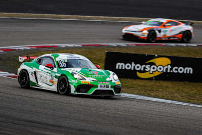Dank der richtigen Reifenwahl übernahm der von Platz zwei gestartete Vorjahreschampion Møller Madsen im Porsche die Führung von Polesetter Springob. Ihm folgte Ortmann im Aston Martin dicht auf den Fersen, der fiel aber kurz vor dem Fahrerwechsel hinter Porsche-Pilot Sturm auf Platz drei zurück. „Ich habe versucht, vorne mitzufahren, was mir gelungen ist. Zum Ende meines Stints wollte ich für Hugo noch ein wenig die Reifen schonen, damit er später nochmals angreifen kann. Das hat super geklappt“, beschrieb Ortmann seine erste Rennhälfte.