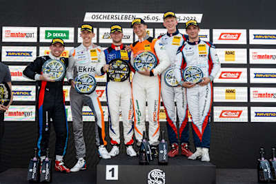 Hugo Sasse (19/Aschersleben) und Mike David Ortmann (23/Ahrensfelde, beide Prosport Racing) gewinnen im Aston Martin Vantage GT4 Lauf zwei der ADAC GT4 Germany in der Motorsport Arena Oschersleben. In einem spannenden Wertungslauf auf der 3,667 Kilometer langen Strecke in der Nähe von Magdeburg erkämpften Maxime Oosten (19/NLD) und Michal Makes (23/CZE, beide Project 1) im BMW M4 GT4 Rang zwei vor ihren Markenkollegen Mex Jansen (17/NLD) und Nico Hantke (19/Hürth, beide Walkenhorst Motorsport). „Die Stimmung ist jetzt natürlich super. Wir haben nicht unbedingt mit diesem Erfolg Sieg gerechnet, denn die BMW waren stark. Umso schöner ist es nun, den ersten Saisonsieg zu holen“, jubelte Sasse, der nur wenige Kilometer entfernt von Oschersleben wohnt und somit sein Heimspiel feierte, welches am Wochenende 35.000 Zuschauer verfolgten.