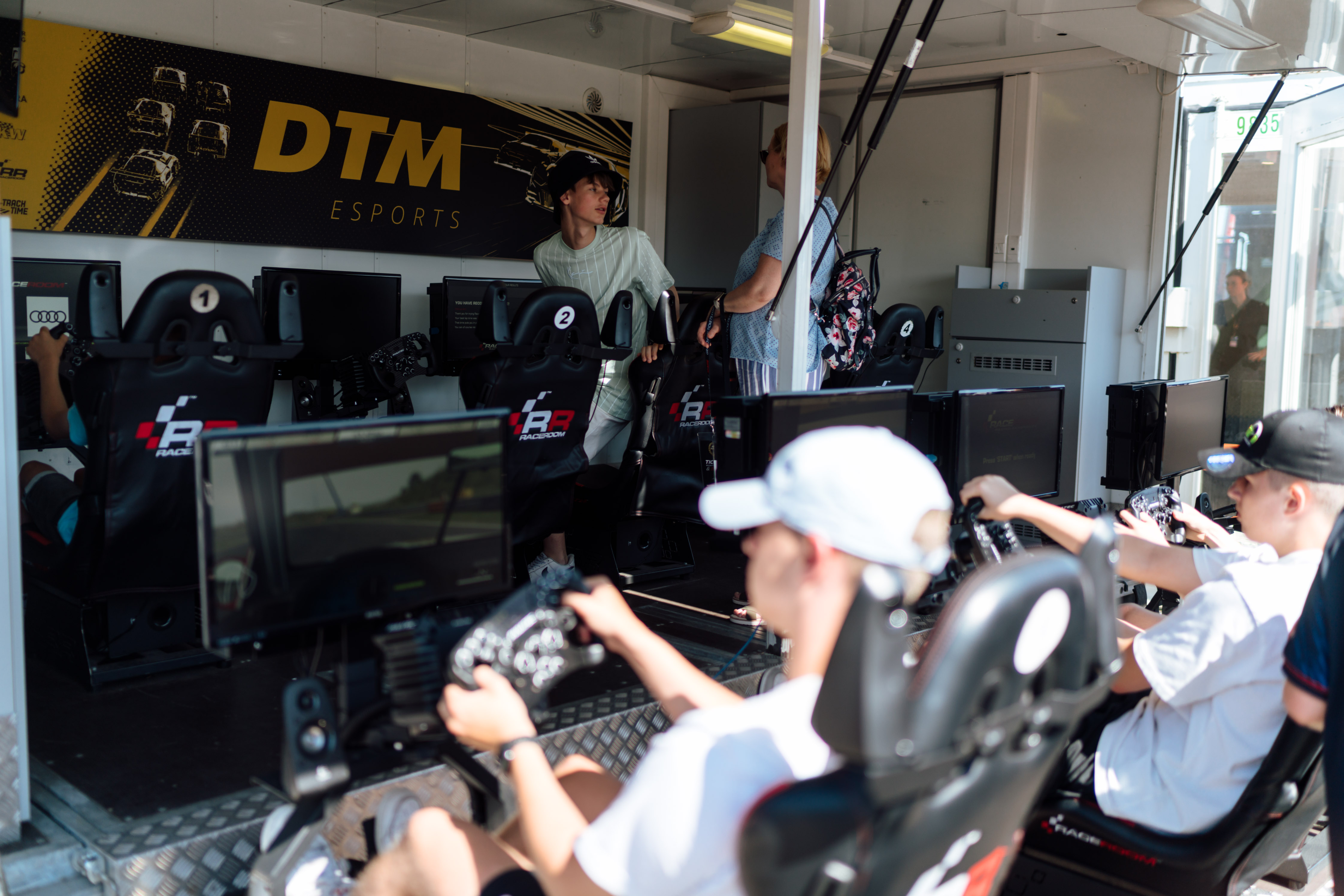 Die Möglichkeit, ihr Fahrkönnen auszutesten haben Besucher an den Simulatoren von RaceRoom. Die Simulatoren stehen kostenfrei in der Fan Zone zur Verfügung.