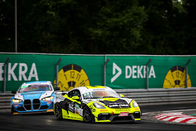 Härtling begann das Rennen von der Pole-Position aus und konnte die Spitze gegen BMW-Pilot Piana gekonnt verteidigen. In der ersten Rennhälfte fuhr zudem Kristensen im Porsche bis auf die dritte Position vor. Das Führungstrio wechselte erst gegen Schluss des obligatorischen Boxenstopp-Fensters die jeweiligen Fahrer. Förderer, der von Härtling übernommen hatte, fuhr in der zweiten Rennhälfte dann zum souveränen Sieg, was für beide auch den Triumph in der Junior-Wertung bedeutete. Pianas Partner Besler behielt die zweite Position. Um Platz drei wurde es hingegen nochmals richtig spannend. Mercedes-AMG-Pilot Cedric Fuchs (19/Holzappel, Motorsport by Schnitzelalm) machte mächtig Druck auf Robinson, der zuvor von Kristensen übernommen hatte. Mit sehenswerten Überholmanövern wurden mehrmals die Plätze getauscht. Am Ende spielte Robinson aber seine Erfahrung aus und setzte sich durch. Fuchs und Teamkollege Joel Mesch (20/Erkelenz) beendeten das Rennen final auf Platz fünf, da Porsche-Fahrer Denny Berndt (20/Berlin), der gemeinsam mit Max Rosam (20/Taunusstein, beide Razoon - more than Racing) antrat, auf den letzten Metern aus dem Zweikampf vor ihm noch Profit schlug und die vierte Position eroberte. Fuchs konnte sich dennoch über den Triumph in der Rookie-Wertung freuen.