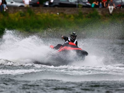 Beim Saisonfinale auf dem Badesee in Düren-Gürzenich (Kreis Düren) begeisterten die Piloten des ADAC Jetboot Cup die Zuschauer einmal mehr mit faszinierendem Rennsport. Mit den bis zu 500 PS starken Maschinen wurde bei spätsommerlichen Temperaturen und blauem Himmel Jetbootsport vom allerfeinsten für die Fans der Highspeed-Rennen geboten.
