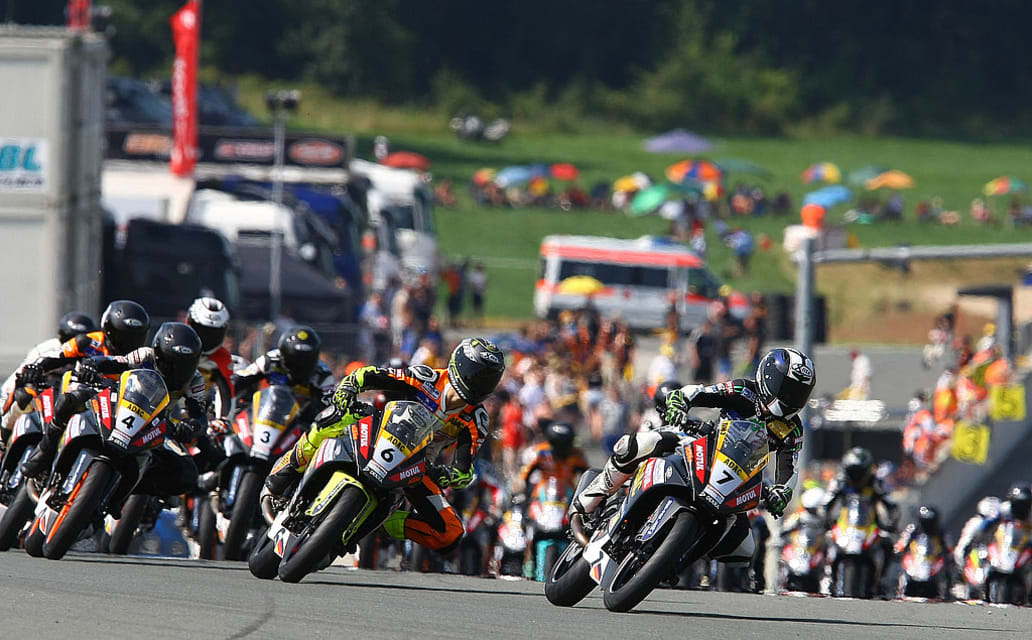 Dennis Norick Stelzer (13, Dohma) musste sich im Kampf ums Podium geschlagen geben und kam als Vierter im Ziel an. Pedro John (14, Ulm) folgte direkt hinter dem 13-Jährigen. Jonas Hähle (14, Lugau), der im Rahmen des eni Motorrad Grand Prix Deutschland auf dem Sachsenring zum ersten Mal auf dem Podium stand, sicherte sich den sechsten Platz vor Michaël Verbrugghe (17, Kessel, BEL). Kenny Leibold (18, Schlierbach), Maximilian Sohnius (14, Hausham) und Toni Thurmayer (19, Stockstadt) erkämpften die letzten Plätze unter den Top-Ten.