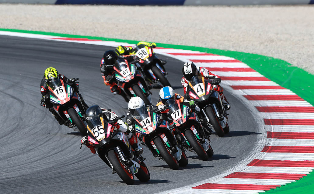 Das sechste Rennen des ADAC Junior Cup powered by KTM startete am Sonntagnachmittag nur kurz nach dem Lauf der MotoGP auf dem Red Bull Ring im österreichischen Spielberg. Die 33 Starter boten den zahlreichen Fans eine beeindruckende Show mit vielen Windschattenschlachten und spannenden Positionswechseln. Nach 13 anstrengenden Runden war es schließlich Brian David Hart (14, ESP), der mit der Sonne um die Wette strahlte, nachdem er seinen dritten Sieg in dieser Saison einfahren konnte.