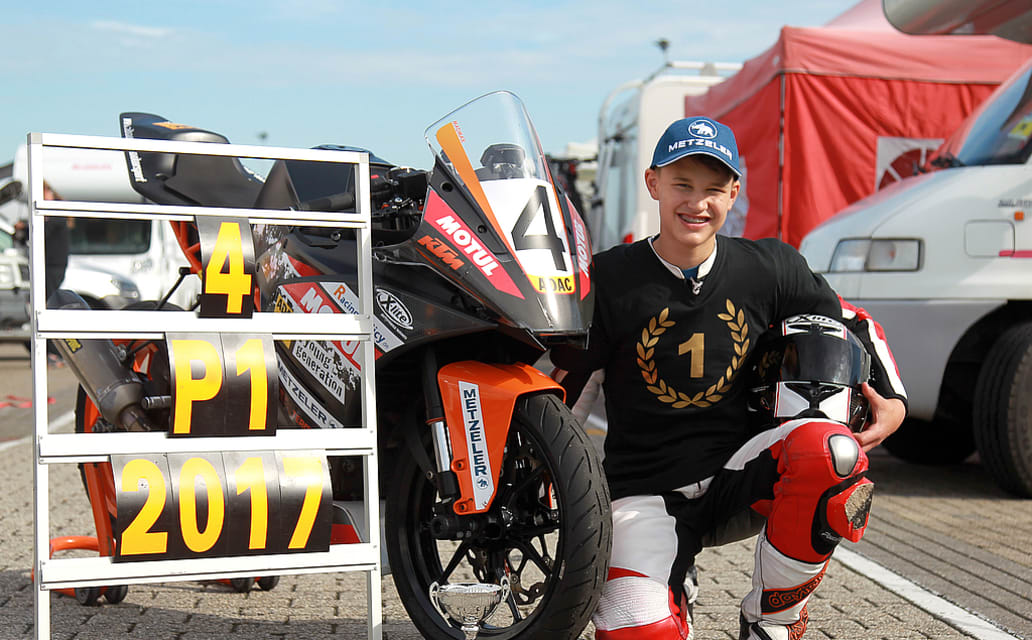 "Ich hätte nie erwartet, dass ich in meinem ersten Jahr hier den Titel holen kann. Ich habe damit gerechnet, dass ich vielleicht mal unter die Top-5 fahre und hin und wieder ein Podium abstaube, aber dass ich direkt ab der zweiten Runde konstant aufs Podest komme und immer vorne mitfahren kann, ist echt der Wahnsinn", strahlt Max Schmidt (14, Wuppertal), der frisch gekürte Meister im ADAC Junior Cup powered by KTM 2017.