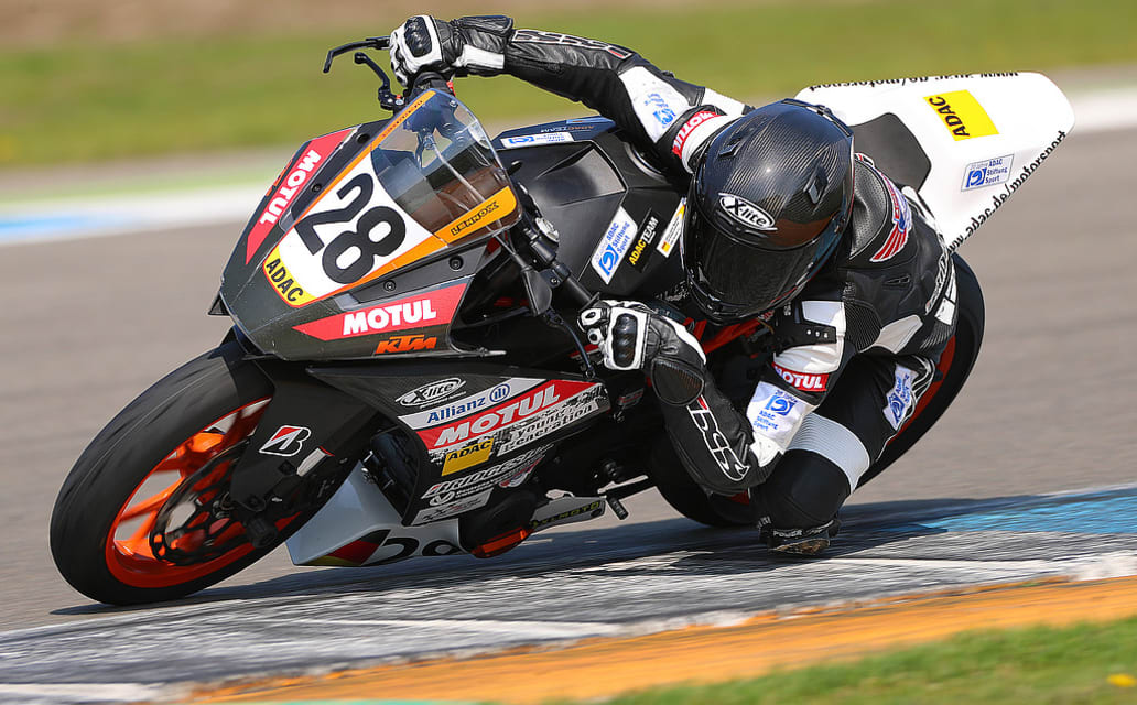 2013 bin ich zum ersten Mal Motorrad gefahren, auf einem Pocket Bike bei einem Schnupperkurs. Das hat direkt Spaß gemacht.