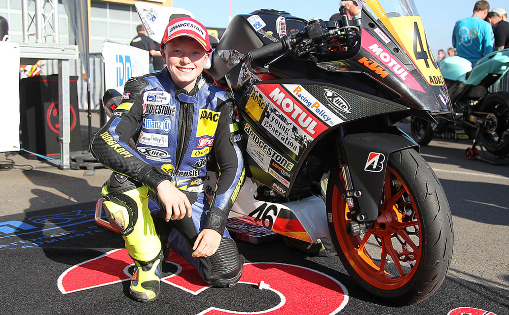 "Im Rennen des ADAC Mini Bike Cups in Faßberg 2017 als ich auf Grund einer Kollision beim Start von Motorrad abgestiegen bin und aus der Box als letzter starten musste. Nach 18 Runden kam ich dann als Dritter von 15 Fahrer über die Ziellinie. Das war ein richtig starkes Rennen, meine Eltern hatten danach Gänsehaut."