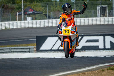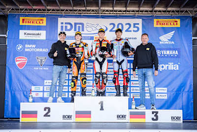 Wieder war es Smilla Göttlich, die am Sonntag von der Pole-Position aus in das Rennen startete, gefolgt von Hinkelmann: Das Führungsduo setzte sich im Laufe des Rennens deutlich vom Rest des Feldes ab und lieferte sich einen packenden Zweikampf mit dem besseren Ende für Hinkelmann, der sich über seinen zweiten Saisonsieg freuen durfte. „Mir wurde im Rennen am Samstag eine falsche Rundenanzahl angezeigt, ich konnte daher keine Attacke mehr starten. Umso mehr freut es mich, dass es mir im zweiten Rennlauf am Sonntag gelungen ist, den Sieg einzufahren,“so Hinkelmann. Hinter Smilla Göttlich kämpften Wolff, Schmidt und Lennard Göttlich um das Podium: Nach einem Sturz von Lennard Göttlich in der vorletzten Runde wurde das Rennen mit Roter Flagge vorzeitig beendet, Schmidt landete auf Platz drei, gefolgt von Wolff und Filip Knigge, der nach der schnellsten Rennrunde am Samstag auch im zweiten Rennen seine Stärke aufzeigen konnte. Debütant Fabian Beitschek aus Österreich konnte aus gesundheitlichen Gründen in beiden Rennen nicht starten, Lars Weißensee verpasste aufgrund von Motorproblemen ebenfalls beide Rennläufe.