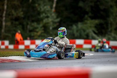 Milan Ross (Uchtelfangen/ADAC Saarland e.V.) startete mit einer Pole-Position und dem Sieg im ersten Heat gelungen in das Renngeschehen. Doch im zweiten Durchgang fiel er zurück und Devin Titz (Bönen/CRG Holland) übernahm das Zepter. Der Youngster hatte damit auch die Pole-Position für das erste Finale am Sonntag inne. Auf nasser Strecke gewann er auch den Start, doch sein Teamkollege Felix Groneck (Melle/CRG Holland) hatte einen etwas höheren Speed und siegte. Eine anschließende Disqualifikation brachte Titz jedoch wieder den Sieg ein. Im zweiten Umlauf gab es für den Westfalen kein Halten mehr. Mit einer souveränen Vorstellung holte er sich den Sieg und war auf dem Podium bester Laune: „Die Strecke in Kerpen mag ich. Ich wollte hier gewinnen und freue mich das geschafft zu haben. Die Rennen waren aber teilweise anstrengen, trotzdem hat es viel Spaß gemacht.“