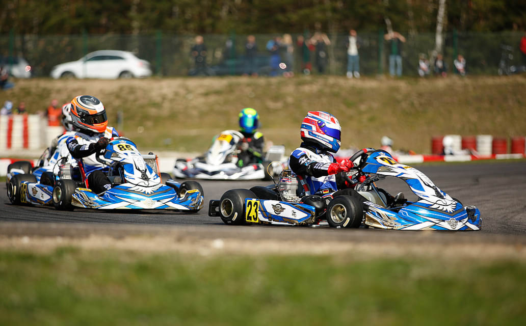 Einen perfekten Start in das Rennwochenende erwischte Tizian Houf (Leinburg/RS Motorsport). Der CRG-Pilot gewann das Zeittraining, führte nach den Heats und schloss auch das erste Rennen als Sieger ab. Dabei hing ihm aber die Konkurrenz im Nacken. Mit Christian Lilley (Brentwood) und Maddox Wirtz (Bornheim/RMW Motorsport) führten zwischenzeitlich auch zwei andere Piloten das Feld ab. Doch Houf setzte sich letztlich gegen die beiden Mitstreiter durch. Als Vierter schloss Dominik Jung (Kitzingen/ADAC Nordbayern e.V.) vor seiner Markenkollegin Svenja Dreher (Balgheim) die Pokalränge ab.