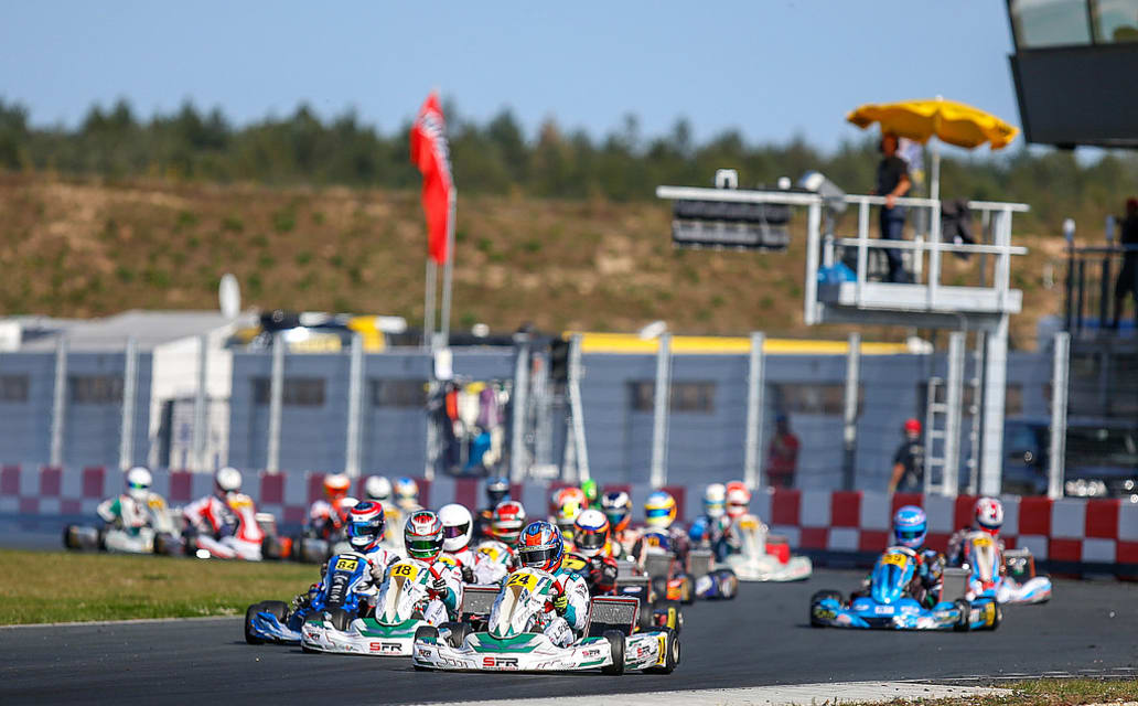 Mit 32 Youngstern war das Feld der OK Junior stark besetzt und es zeigte sich schon im Qualifying die hohe Leistungsdichte. Bis zu Platz 25 lagen die Fahrerinnen und Fahrer innerhalb von einer Sekunde - angeführt wurde das Klassement von Herolind Nuredini (Oststeinbek/KSM Official Racing Team). Der Schleswig-Holsteiner spielte dann auch im ersten Rennen eine große Rolle im Kampf um den Sieg. Im Rennverlauf kristallisierte sich eine Zehnergruppe heraus die um den Sieg kämpfte. Nach mehreren Führungswechseln hatte mit dem Fallen der Zielflagge Nuredini die Nase vorne und feierte vor Torben Gröndahl (Hamburg/CV Performance Group) und dem amtierenden Bambini-Meister Tom Kalender (Hamm-Sieg/DS Kartsport) seinen ersten Saisonsieg. Die Pokalränge wurden durch den Briten Daniel Guinchard (Hertfordshire/SFR Motorsport) und Luca Wehrli (Kapstadt/KSM Official Racing Team) aus Südafrika komplettiert.