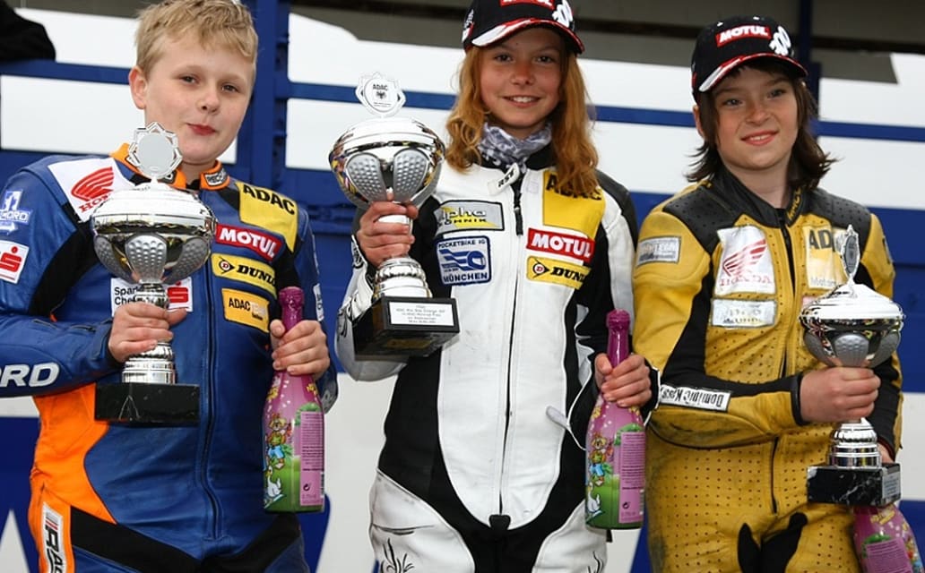 Für Aufsehen sorgte Jennifer Küther bei den Einsteigern, die mit der Viertakt-Honda NSF 100 um Punkte fahren. Schon in der zweiten Rennrunde war die 12-jährige an der Spitze. Dirk Geiger (Mannheim) war in Führung liegend gestürzt. Küther ließ sich dagegen nicht aus dem Konzept bringen und baute ihren Vorsprung vor den Verfolgern auf elf Sekunden aus. Die begeisterte Rock´n´Roll-Tänzerin gewann als erstes Mädchen ein ADAC Mini Bike-Rennen in der NSF 100-Klasse. Im zweiten Lauf musste sie sich Geiger geschlagen geben, doch bis zum Schluss hatten sich die Beiden die Führungsarbeit geteilt. Wie Küther kam auch Moritz Jenkner, Sohn des ehemaligen Grand-Prix-Piloten Steve Jenkner, auf das Podest.