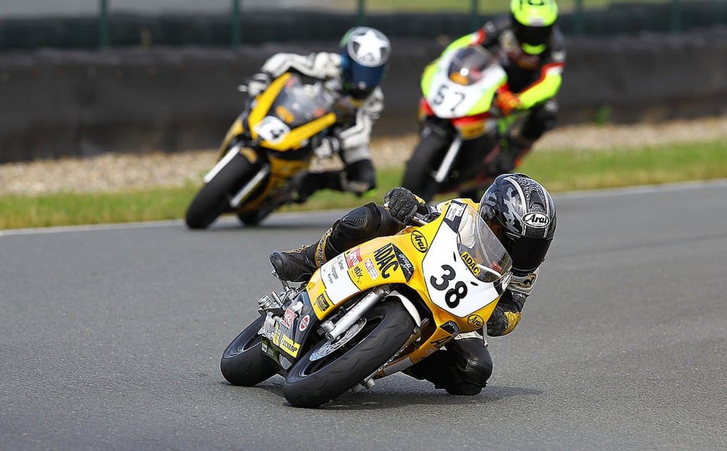 Wie schon vor einer Woche in Oschersleben dominierte Filip Salac auch in Harsewinkel in der Nachwuchsklasse mit einem Doppelsieg. Als Zweiter des ersten Laufes sah Kevin Orgis die schwarz-weiß-karierte Flagge. Die Freude hielt sich in Grenzen. Er hatte den führenden Tschechen rundenlang studiert und wollte ihn im letzten Umlauf überholen, doch es kam anders. Einem überrundeten Fahrer wurde die blaue Flagge, die zum Platz machen auffordert, zunächst nicht gezeigt. Als sie kurz darauf geschwenkt wurde, wehrte sich der Fahrer jedoch gegen das Überholmanöver. Während Salac in der heißen Schlussphase noch schnell einen Weg vorbei fand und enteilte, wurden Orgis und der ihm folgende Tim Georgi länger aufgehalten. Georgi war trotzdem glücklich, hatte er mit dem dritten Platz endlich wieder viele Meisterschaftspunkte gesammelt.