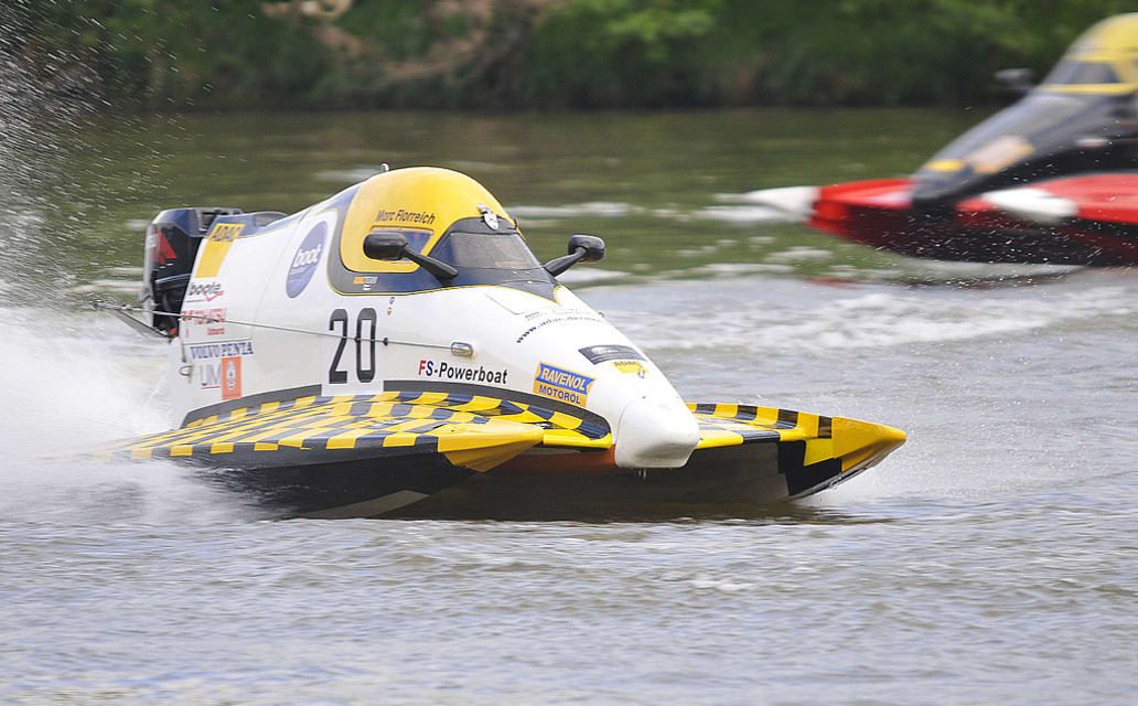 Lauscher dominierte im 40 PS-Katamaran schon im Training. Das Namens-Doppel Kevin Köpcke (19/York) und Kevin Jansen hielt als einziges Anschluss. Das blieb auch im Sprintrennen ähnlich. Nur während Lauscher und Köpcke schon am Start Meter gutmachten und sich sofort als Spitzenreiter zeigten, nahm Jansen nach einer verpatzten Vorstellung als Letzter Kurs auf die erste Wendeboje. In bester Manier rollte er das Feld von hinten auf, wobei es zu einer Touchierung mit Lokalmatador Christian Tietz (33/Dresden) kam, der daraufhin zurück fiel. Jansen schaffte es innerhalb von acht Rennrunden, sich bis auf den dritten Platz nach vorne zu schieben.