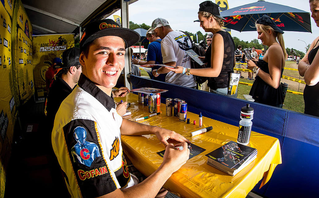 Bei der Autogrammstunde ist es gewünscht, dass Fans ihrem bevorzugten MX-Star auch Fragen stellen und sich locker mit ihm unterhalten. Star-Allüren hat beim ADAC MX Masters keiner. Jeder Motocrosser freut sich über den Kontakt zum Publikum und ist stets bemüht, sich ausreichend Zeit für jeden zu nehmen. "Ich finde die Autogrammstunde großartig. Es macht sehr viel Spaß, wenn dich jemand bittet, etwas für ihn zu signieren und spricht dir selbst als Fahrer natürlich auch viel Anerkennung zu. Das macht einen dann schon ziemlich stolz", erklärt Marcus Schiffer, der in dieser Saison bei fast jeder Veranstaltung zu dem halbstündigen Meeting eingeladen wurde.
