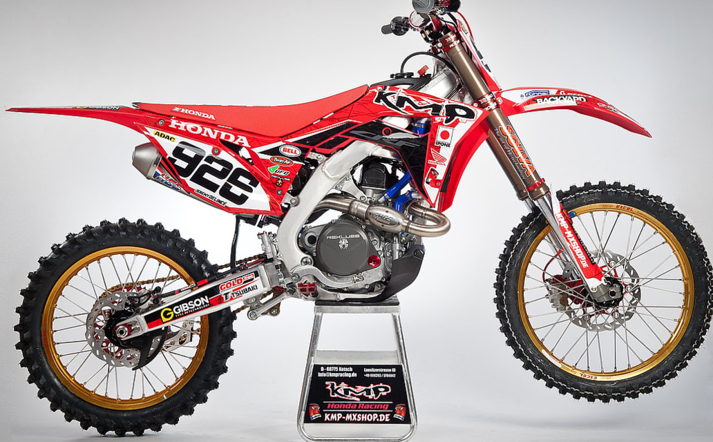 Das KMP-Honda-Racing Team hat sich in den letzten Jahren zu einer festen Größe in der deutschen Motocross Szene entwickelt. Teameigner Alexander Karg ist nicht nur selbst erfolgreich Motocross gefahren, sondern betreibt in Ketsch auch sehr erfolgreich einen Honda MX-Stützpunkt mit Zubehörhandel. Besonders interessant für alle aktiven Motocrosser dürfte sein, dass man sich seine persönliche Honda bei KMP eins zu eins in der exakten Spezifikation der Teambikes aufbauen lassen kann! Zudem gibt es auch jede Menge Fanartikel des Teams im Internetshop unter www.kmp-mxshop.de