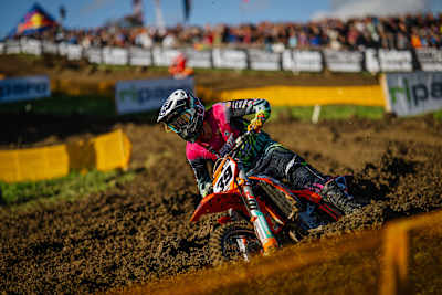„Am Samstag war ich etwas nervös, weil ich wusste, dass Max, wenn er vor mir ins Ziel kommen würde, einen noch größeren Vorsprung haben und noch selbstbewusster sein würde. Ich wusste, dass der Samstag ziemlich wichtig war. Glücklicherweise bin ich dann im ersten Lauf vor Max ins Ziel gekommen und lag wieder vorne. Aber dann war es am Sonntagmorgen ziemlich hektisch, weil es über Nacht viel geregnet hatte und es matschig war. Aber an diesem Tag hat einfach alles gepasst und ich habe mich einfach treiben lassen. Im ersten Lauf am Sonntag hatte ich zum ersten Mal in dieser Saison den Red Bull Holeshot gewonnen, das hat mir sehr geholfen. Ich habe mich einfach auf mich selbst konzentriert und war tatsächlich von der ersten bis zur letzten Runde im zweiten Lauf ‚in the zone‘. Sportler haben dieses ‚Flow‘-Gefühl ein paar Mal in ihrer Karriere, wenn sie einfach wissen, dass es ihr Tag ist und nichts schiefgehen kann. Das habe ich an diesem Tag gespürt. Perfektes Timing also.“