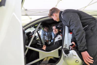 Sie fanden eine speziell präparierte Teststrecke auf der Kartbahn der Motorsport-Arena vor, auf welcher der Corsa-e Rally seine großen Stärken – eine ausgewogene Balance, hohe Agilität und sein bärenstarkes Drehmoment von 260 Newtonmetern – voll ausspielen konnte. So bekamen die Teilnehmer unter kompetenter Anleitung des zweimaligen Junior-Europameisters und frisch gekürten Deutschen Rallye-Meisters Marijan Griebel einen guten Eindruck davon, wie sich der 136 PS starke Kundensportler auf einer echten Wertungsprüfung anfühlt. Und das Urteil war tatsächlich einstimmig: „Macht riesig Spaß!“ Und manchmal auch als Addition: „Das hatte ich so nicht erwartet …“