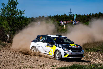 Insbesondere Calle Carlberg und sein norwegischer Beifahrer Jørgen Eriksen (30) waren bis zum Ausfall schnell unterwegs gewesen. Der letztjährige Champion des ADAC Opel Electric Rally Cup „powered by GSe“ kam im 212 PS starken Kundensportrenner aus Rüsselsheim auf Anhieb blendend zurecht, markierte in der dritten Wertungsprüfung (WP) seine erste Bestzeit in der Europameisterschaft und lag im Feld der 17 stark besetzten Rally4-Fahrzeuge des JERC-Klassements auf dem zweiten Rang. Den Podestplatz vor Augen musste der schnelle Skandinavier sein Fahrzeug in WP10 abstellen, nachdem ein Kontakt mit einem Stein am Sonntagvormittag zu einem Folgeschaden am Fahrwerk geführt hatte.