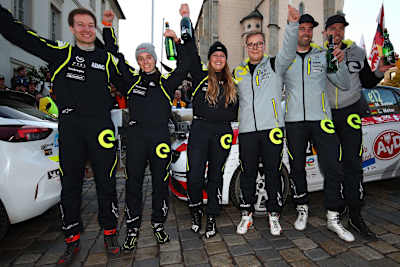 Als Führende waren Timo van der Marel/Erwin Berkhof mit einem Vorsprung von 5,9 Sekunden in die Finalprüfung „Röhrnbach“ (WP11) gestartet. Doch auf diesen entscheidenden 19,66 Kilometern holten Reiter/Meter nochmals alles aus ihrem Opel Corsa-e Rally heraus und distanzierten die Niederländer um exakt 6,0 Sekunden. Womit eine einzige Zehntelsekunde am Ende den Ausschlag zu Gunsten der deutschen Junior-Paarung gab. „Unbeschreiblich“, jubelte Reiter. „Wir sind den ganzen Tag schon voll am Limit gefahren, ich denke, jeder von uns hatte im Laufe dieser anspruchsvollen Rallye den einen oder anderen Fehler drin. Und in der letzten Prüfung haben wir nochmal eine Schippe draufgelegt, das war wirklich an der Grenze. Dass es geklappt hat und wir hier als Sieger stehen, ist überwältigend!“