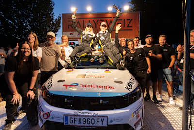 „Mission erfüllt“, jubelte Pröglhöf, der seinen Vorsprung in der Gesamtwertung zur Saisonhalbzeit auf 31 Punkte vergrößerte. „Wir hatten uns bestmöglich vorbereitet, haben viele Onboards aus dem letzten Jahr studiert und einen perfekten Aufschrieb erstellt. Wir kamen rasch in den Rhythmus und konnten eine hohe Pace gehen, ohne zu sehr ins Risiko gehen zu müssen.“ Besonders bemerkenswert: In der neunten Wertungsprüfung legte der Österreicher in seinem nur 136 PS starken, aber über ein maximales Drehmoment von 260 Newtonmeter verfügenden Corsa Rally Electric die zehntschnellste Zeit im Gesamtfeld hin. Pröglhöf/Ettel ließen dabei teils doppelt so starke Allradler hinter sich! „Bergab heißt es einfach: Feuer frei!“, lacht Pröglhöf. „Der Corsa Rally Electric liegt einfach fantastisch, und nach drei Jahren vertraue ich mir und dem Auto auch so voll, dass ich in diesen Passagen ans Limit gehen kann. Es hat wieder mega Spaß gemacht.“