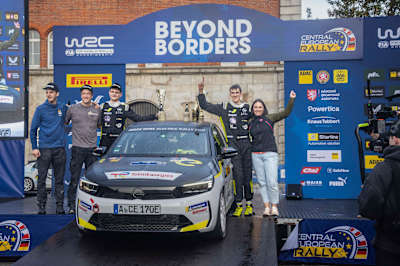 Was für ein Debüt für Tom Heindrichs im ADAC Opel Electric Rally Cup „powered by GSe“! Beim großen Saisonfinale im Rahmen der Central European Rally feierte der 20-jährige Halbbruder von Rallye-WM-Leader Thierry Neuville an der Seite seines Beifahrers Jonas Schmitz auf Anhieb den ersten Sieg im weltweit ersten elektrischen Rallye-Markenpokal. Auch wenn er als Gastfahrer weder Punkte noch Preisgeld erhielt, war der junge Belgier im Ziel in Passau sprachlos: „Damit hätte ich niemals gerechnet! Auf den ersten Kilometern dachten wir noch: Oje, wo führt das hin? In der Folge haben wir uns aber schnell ins Auto reingefunden und uns kontinuierlich gesteigert. Den Sieg widmen wir dem Team um Philipp Reich und Johannes Fürst, die das ermöglicht haben und ebenso motiviert waren wie wir. Wir haben viel gelernt und hatten viel Spaß bei dieser tollen Atmosphäre. Ich ziehe meinen Hut vor Opel und ADAC. Sie haben hier einen super Cup aufgebaut, eine perfekte Einstiegsplattform für den professionellen Rallyesport.“